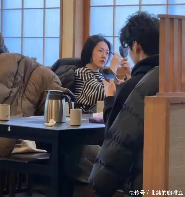 第二张是小S和S妈相互依偎,S妈戴着帽子,胸前是红色围脖,显得苍老且憔悴,眼眶中依稀有泪光闪动。